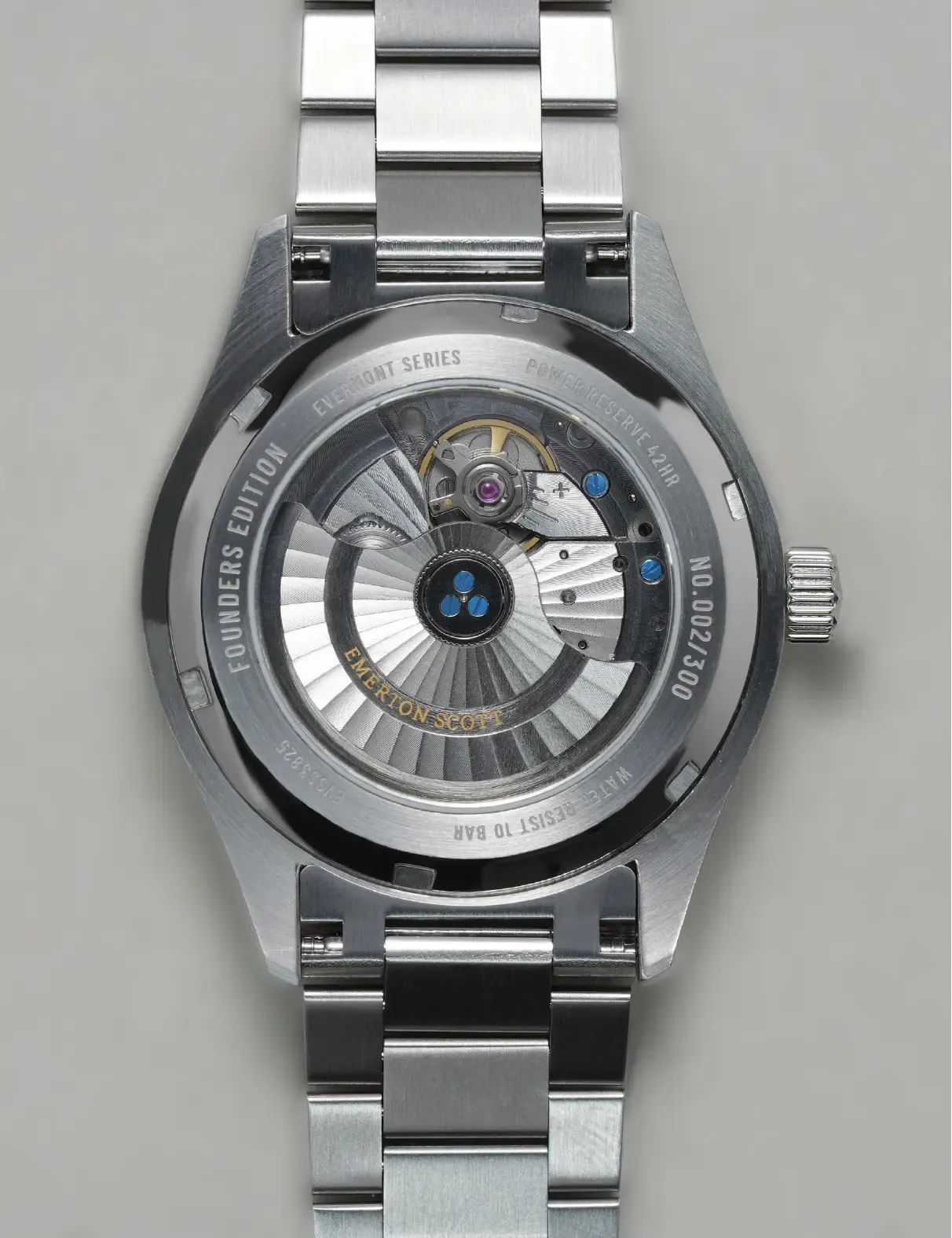 38,4x10,3x46 мм. ES-M9015 (механизм Miyota 9015, специально декорированный для Emerton Scott)