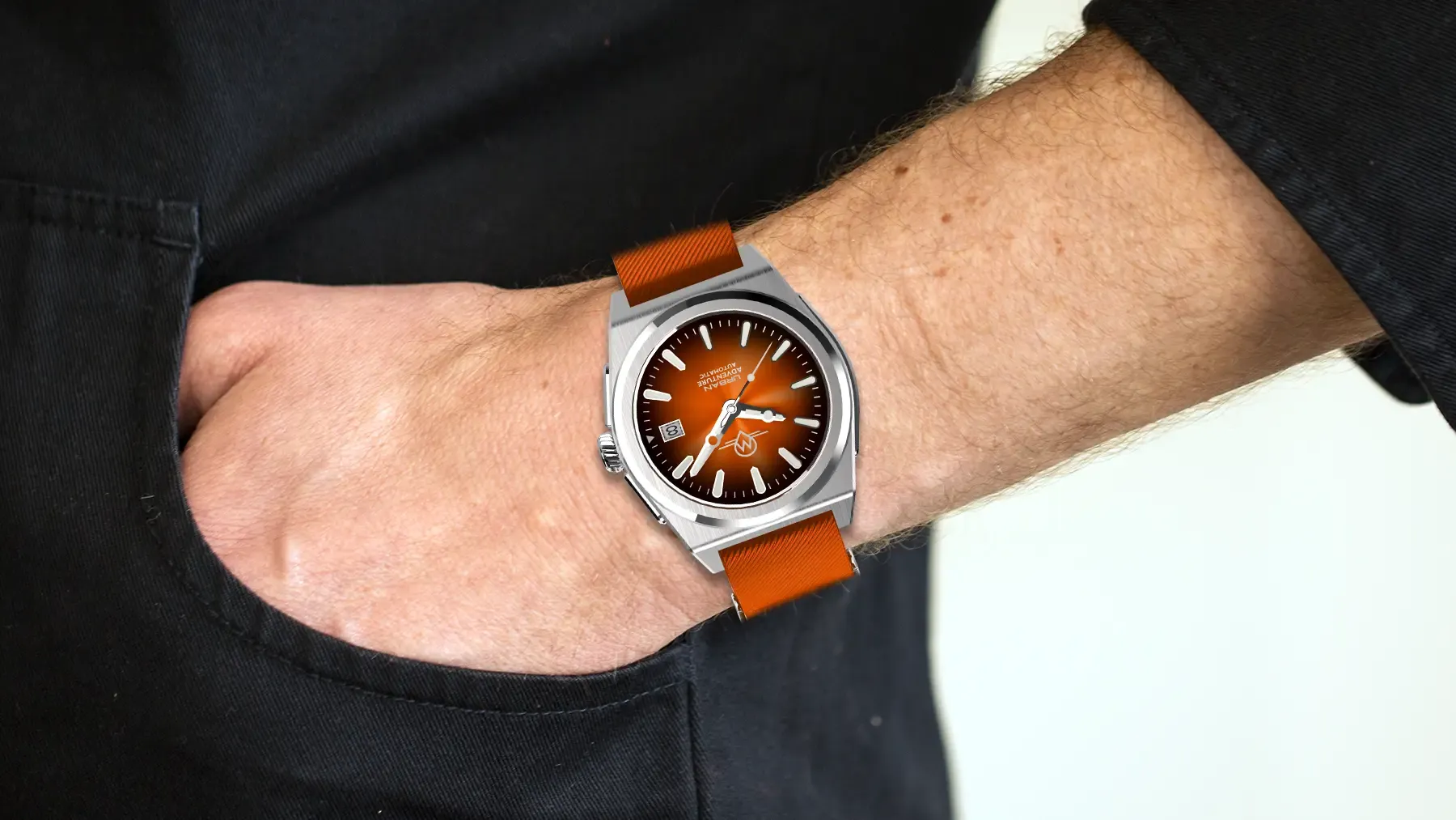 Individually numbered, limited to just 100 pieces. Stainless Steel 316L, automatic integrated sports watch. Presented on a quick-release tapered bracelet with deployment clasp and a NBR rubber military style strap.