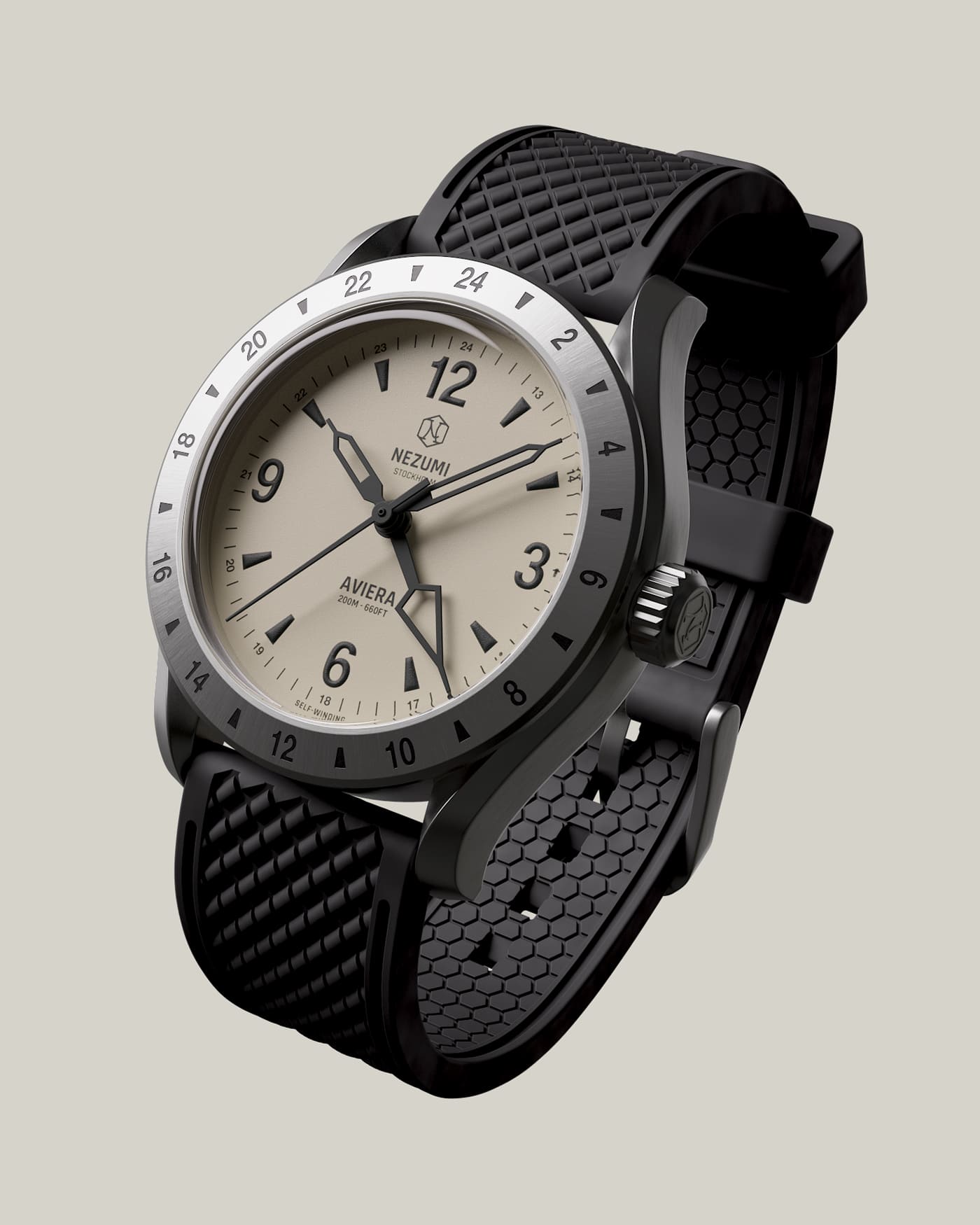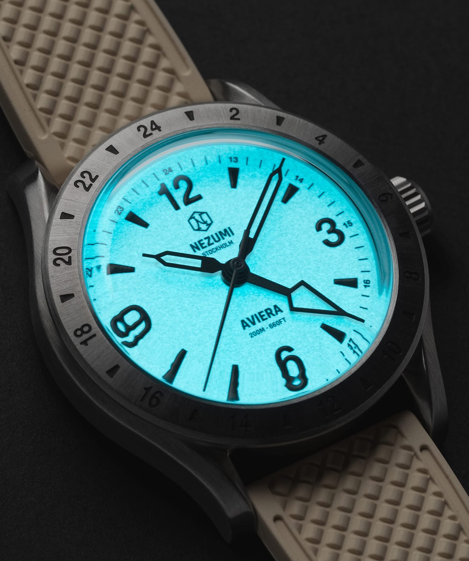 This seasonal colorway is limited to only 300 watches. Assembled in Germany, this updated Aviera GMT ref. AA3.302 features a fully luminous dial, a 40mm brushed tapered case, 24h fixed 39mm bezel and is powered by the Miyota 9075 automatic traveler GMT movement ticking at 28’800 mph/bph. Free Shipping 2 Year Warranty