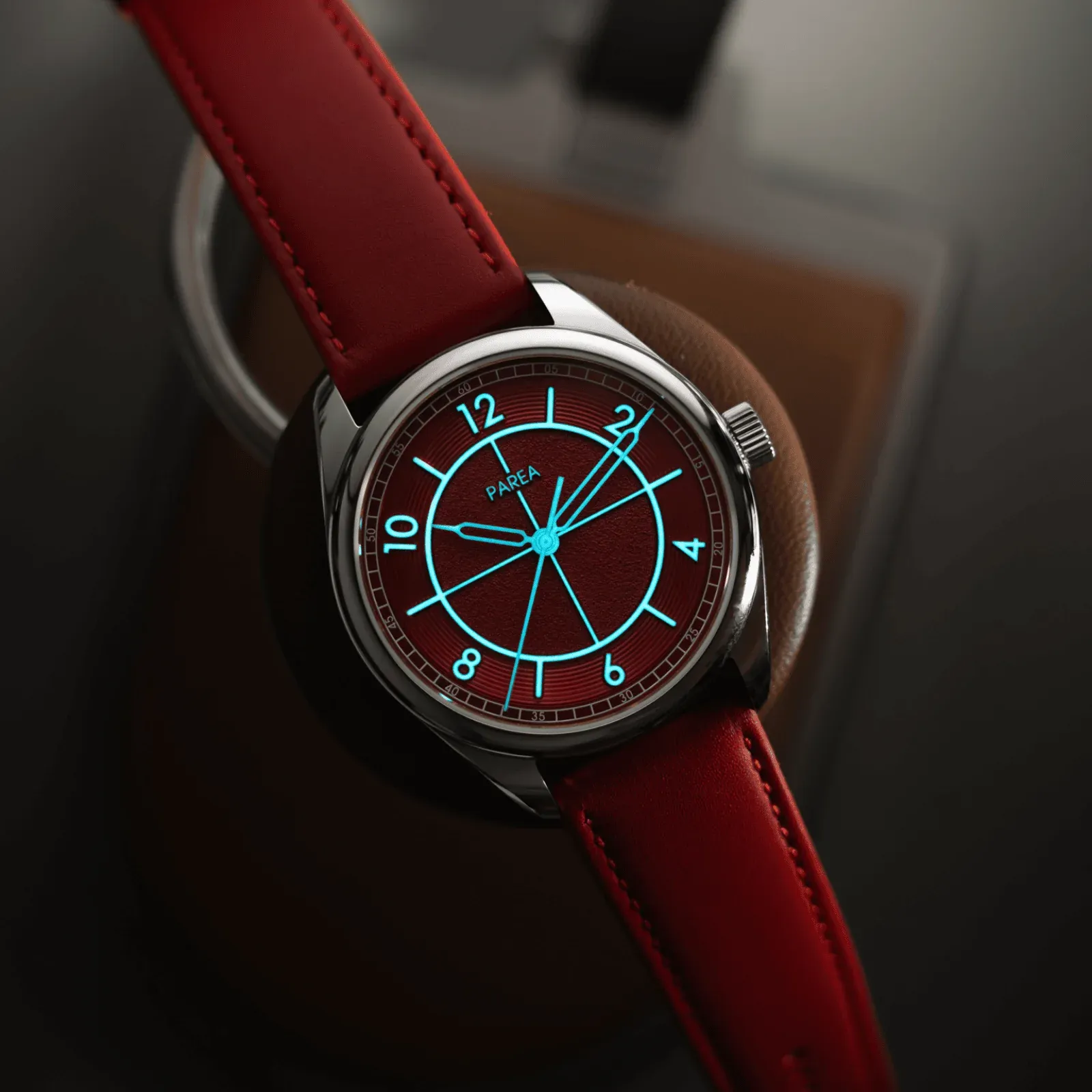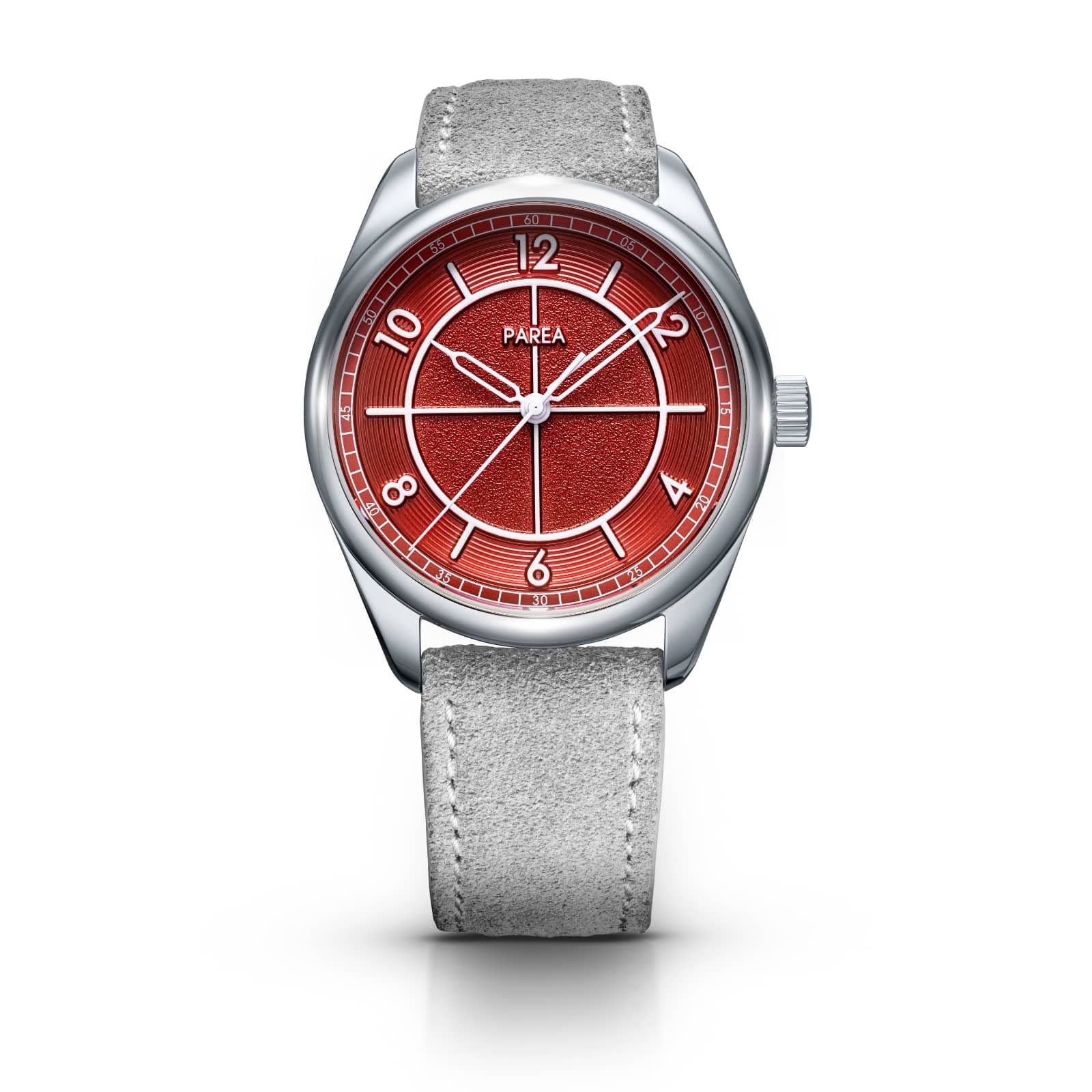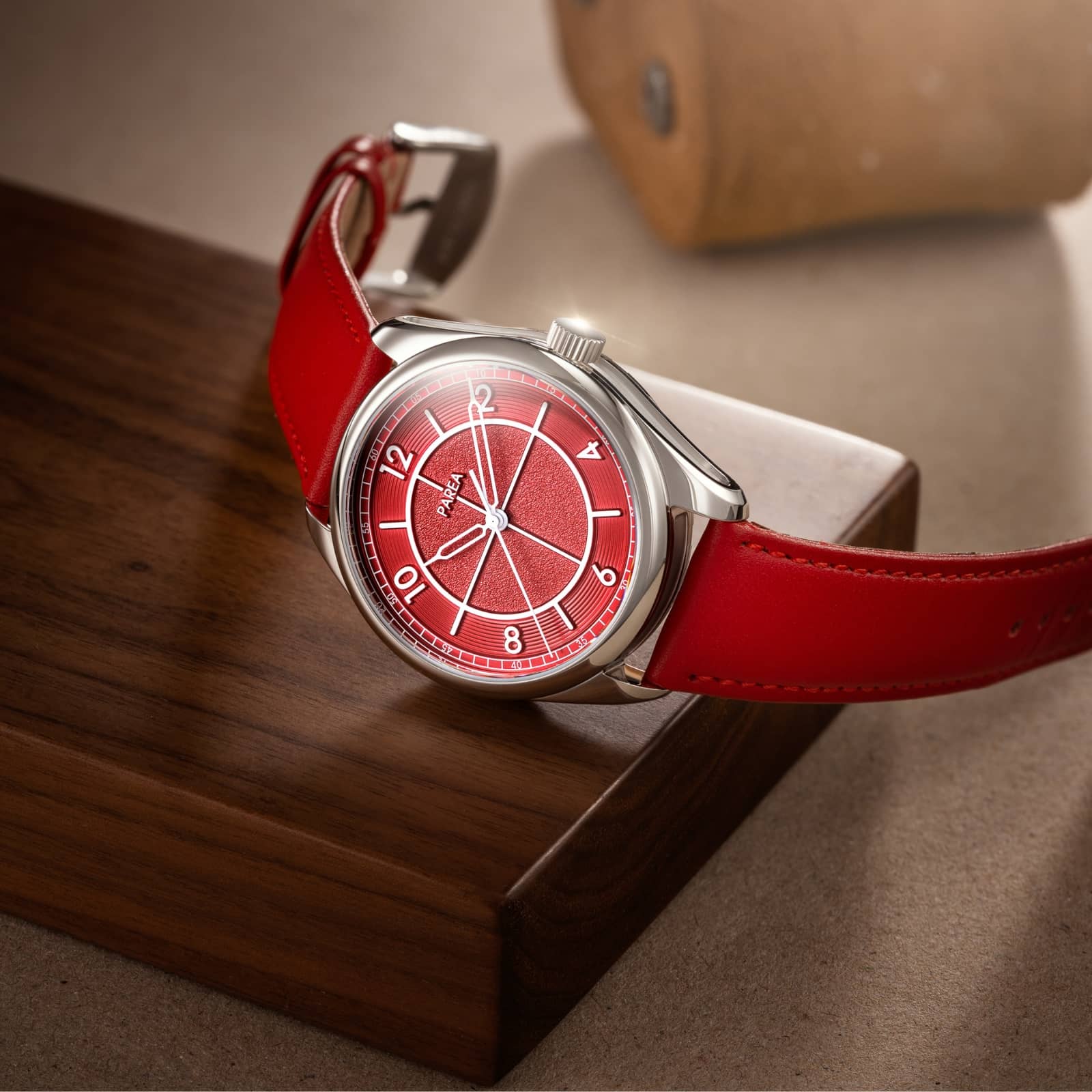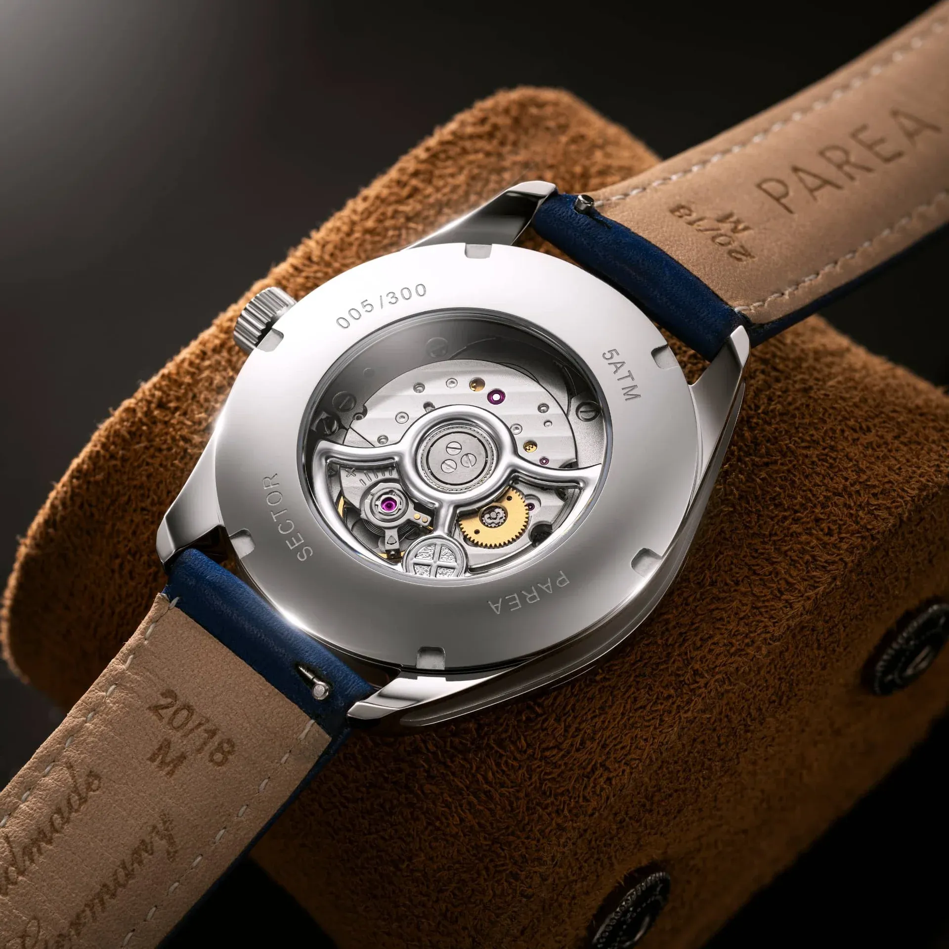 The Parea Sector features a refined 39mm case with a unique combination of mirror-polished and sandblasted finishes. With elegantly curved lugs and a total thickness of 10.6mm (including the crystal), it offers a slim, balanced profile on the wrist. Inside, it’s powered by the reliable Miyota 9039 automatic movement,