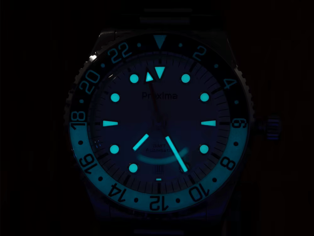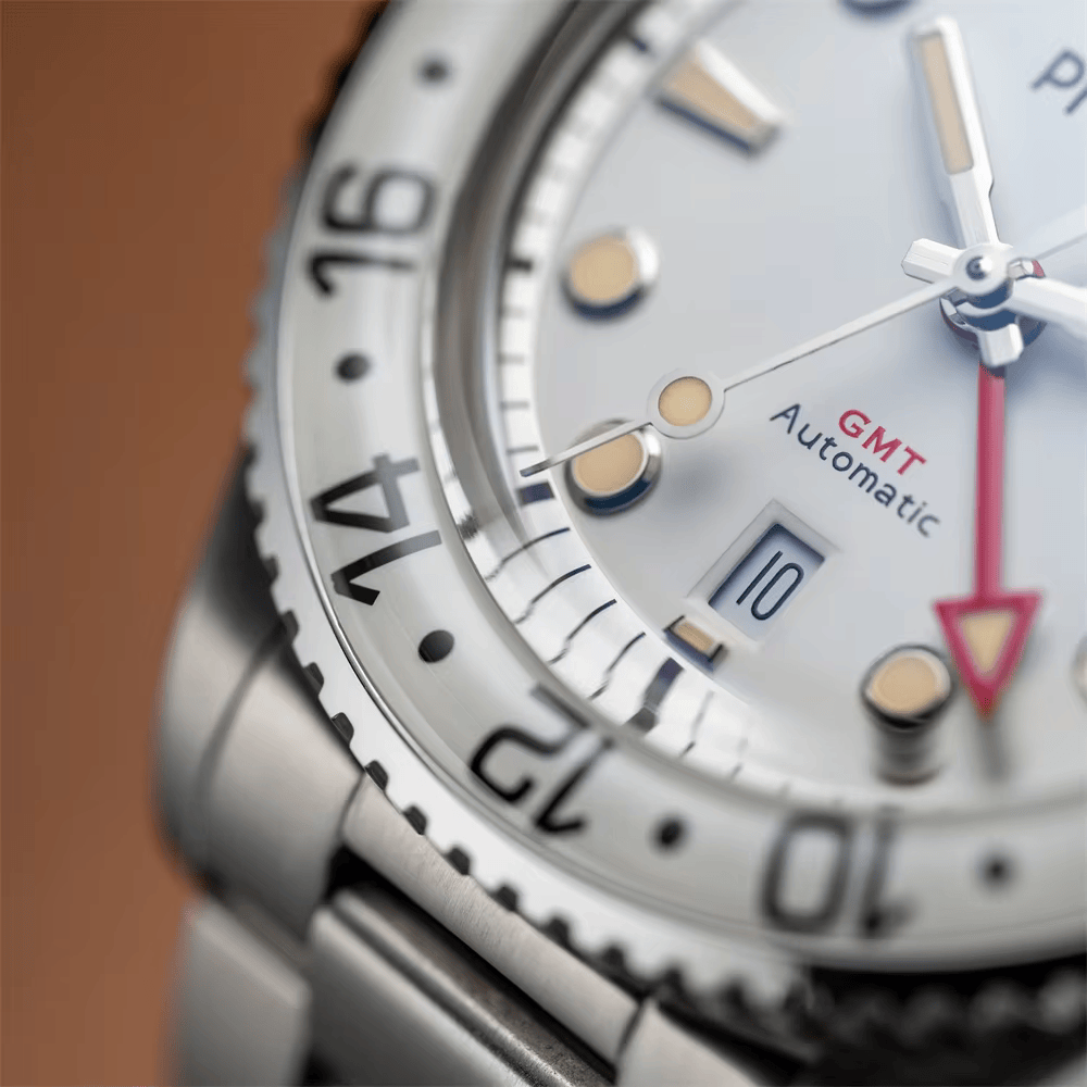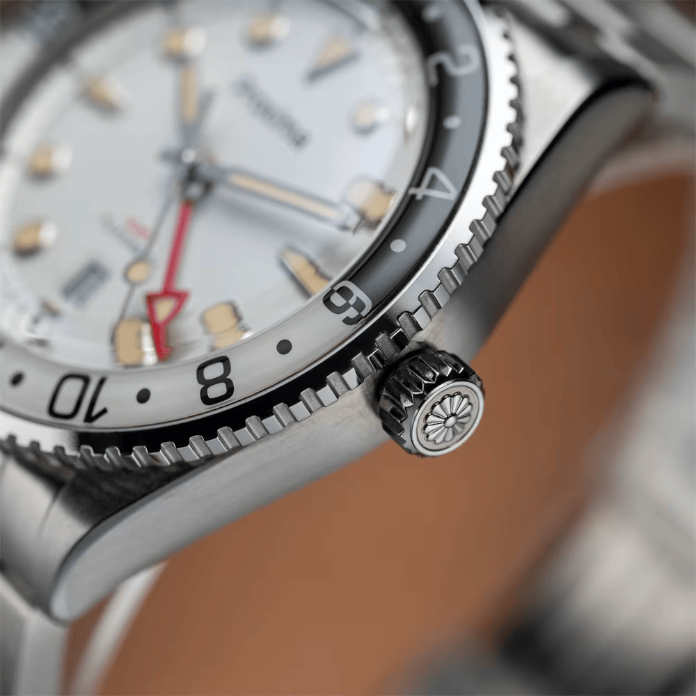 Specification of the productsModel: PX1702Movement: Hangzhou 6460 [Automatic mechanical movement]Case Material : 316L Stainless Steel39mm in diameterLug to Lug 47.5mmThickness 13.4mmBand width 20mm Glass: Sapphire Crystal Bubble Glass, AR CoatingBezel: GMT Bi-directional 24 Clicks Bezel, Sapphire Gl