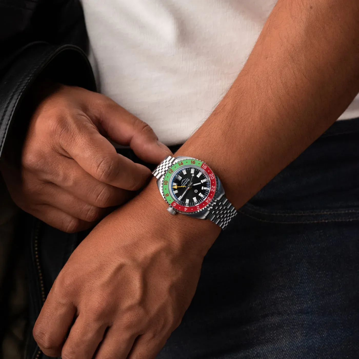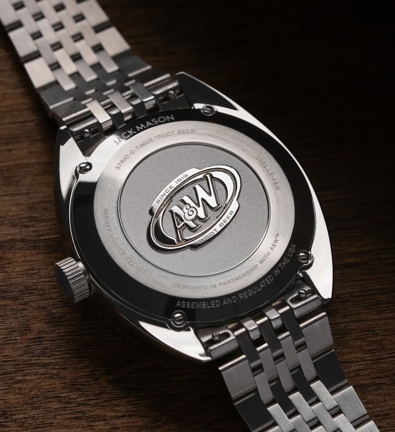 Техасский микробренд Jack Mason представили в рамках своей коллекции Strat-o-timer GMT официальные коллаборации Strat-o-timer GMT: Dr Pepper® Real Sugar и Strat-o-timer GMT: A&W® Root Beer.